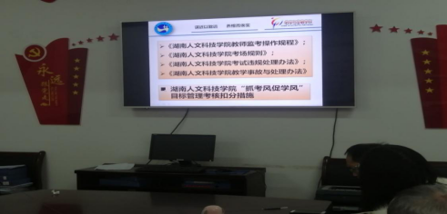 12月27日下午,在学而楼203举行了全院教职工期末考试工作会议,会议由院长李军成主持,以落实学校文件精神、促进期末考试工作正常运行为目的。在会上罗志军副院长带领老师们学习了相关考试管理规章制度文件:《44118太阳成城集团教师监考操作规程》、《湖南人文件科技学院考场规则》、《44118太阳成城集团考试违规处理办法》、《44118太阳成城集团教学事故与处理办法》、《44118太阳成城集团“抓考风促学风”目标管理考核扣分措施》等文件,并解读了文件主要精神,强调了监考纪律,要求监考老师认真履行监考职责,全程把控好考场秩序,把舞弊消灭在萌芽状态;把“抓考风促学风”与目标管理对接,加强对学生的诚信教育,要求学生诚信参考,细化责任管理目标,明确考试职责要求,最后动员老师们齐心协力做好监考、阅卷、录入成绩等任务关,圆满完成期末考试工作。