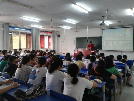 李老师以自身的工作经历作为基础,给学生们讲述了作为一名中学数学教师应该具备的条件。李老师坦言,对教育事业一般会经历由“抵触”到“尊重”再到“爱上”这三个过程,“爱上教育”是成功的基础,“肯钻研”是成功的关键,“教研教改的突破”是成功的深化。整个讲座充满激情,掌声不断,为这些准备投身于教育事业的学子树立了一个好的标杆。