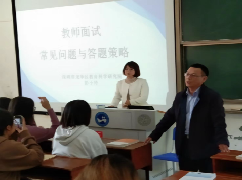 11月17日下午,深圳市龙华区教育科学研究院彭小玲教研员在学而楼309为太阳成官网2021级数学与应用数学的学生做了一场别开生面的“教师面试技巧”讲座。