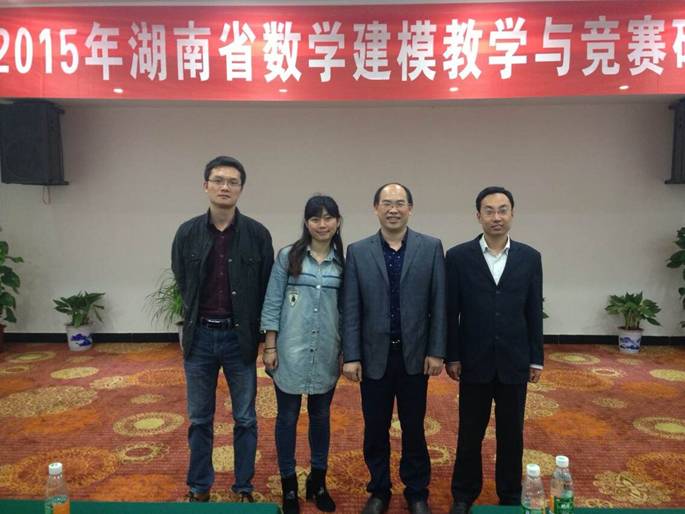 4月24日至25日,由湖南省大学生数学建模竞赛组委会举办、国防科技大学承办的2015年湖南省大学生数学建模教学与竞赛研讨会在长沙召开,我系陈国华主任和李军成、刘奇飞、杨炼老师参加了本次会议。本次会议旨在提高湖南省高等学校数学建模教学与竞赛的水平,加强数学建模的任课教师和指导教师之间的交流。