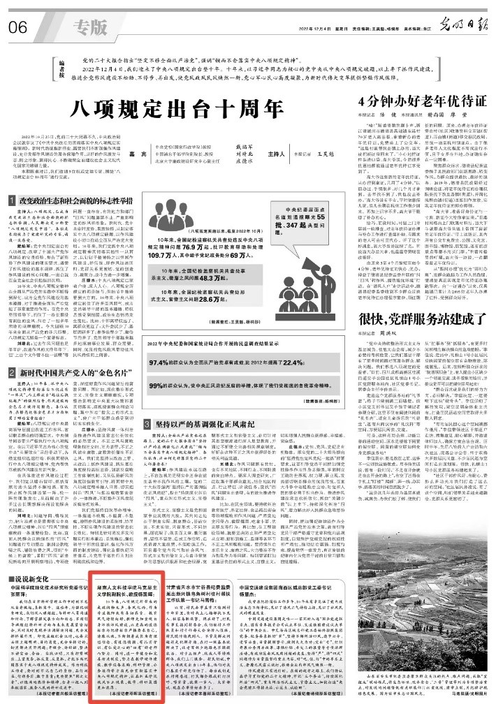 12月4日,《光明日报》刊发44118太阳成城集团马克思主义学院副院长、学科方向带头人杨国辉教授的反响材料。这一反响材料是关于中央八项规定出台十年以来,杨国辉对其在教育领域所产生成效的真切感受。