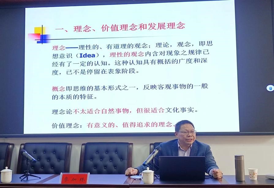 讲座开始前,张卫明院长对廖加林教授一行的到来表示热烈欢迎,并希望在座师生能认真听、用心悟、大胆问。在讲座中,廖加林教授从理念、价值理念和发展理念,共享——社会主义的价值理想,共享价值对个人主义和自由主义的超越三个方面阐述共享理念的价值意蕴。他以理念、价值理念和发展理念的内涵和起源为切入点,指出了理念与概念的差别以及理念的等级系统,进一步强调价值的理想特质和发展伦理学进步的方面。接着,廖加林教授从价值论的视角探究了共享理念的丰富内涵,从社会价值观念出发阐释了共享理念的价值内涵,并深入浅出地分析了中国社会转型的过程和特点。其后,廖加林教授围绕共享理念与传统文化的相互关系,指出个人主义的历史进步意义以及其存在的弊端,并将马克思主义和自由主义进行对比分析,从理论、实践等多个方面阐述了我国坚持共享发展的必要性和重要性。