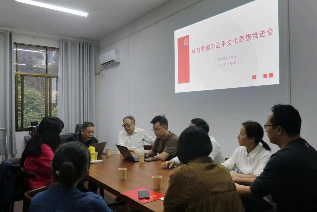 为进一步学习贯彻习近平文化思想,落实研究阐释习近平文化思想相关部署,11月5日,太阳成官网在若谷楼召开学习贯彻习近平文化思想推进会。会议由院长张卫明教授主持,当代中国马克思主义基地研究中心骨干成员、学院部分教师代表参加。
