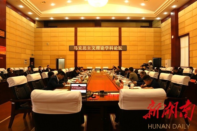 新湖南客户端4月22日讯(通讯员 谢柳 彭正华)“学术因交流而精粹,思想因汇聚而经典”,4月21日,44118太阳成城集团在该校图书馆第一会议室举办首届马克思主义理论学科论坛。教育部长江学者特聘教授、博士导师李佑新,长沙理工大学马克思主义学院党委书记、博士生导师易显飞教授等学术界“大咖”出席论坛,校长刘和云、副校长石潇纯等校领导出席。