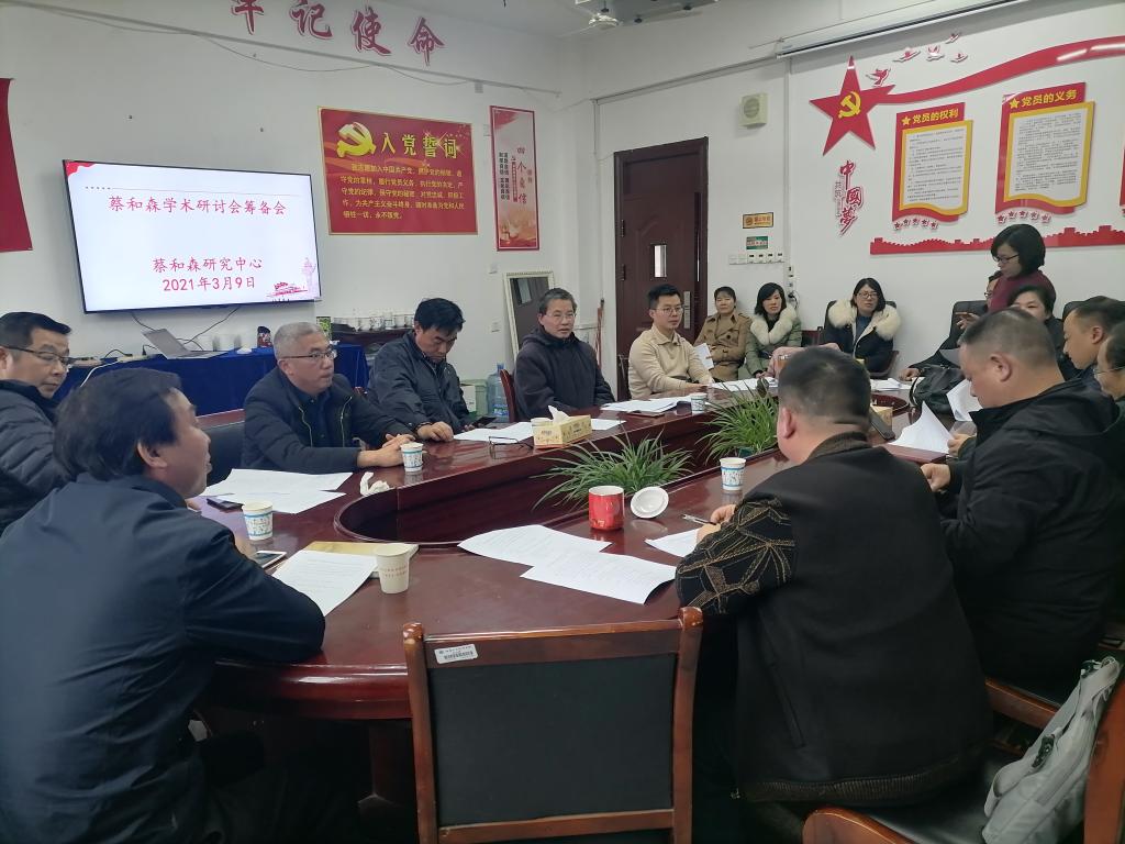 2021年3月9日,“蔡和森党建思想暨蔡和森诞辰126周年”筹备会在致远楼516室召开。研讨会拟将邀请蔡和森研究专家学者50余人,围绕“蔡和森的建党思想”为主题,就蔡和森革命家庭与中国共产党的成立、建设,蔡和森革命家庭与中国革命道路等内容展开研究讨论。本次研讨会由太阳成官网和中共娄底市委宣传部、中共双峰县委、县政府共同举办,太阳成官网和娄底市委党史办、双峰县委宣传部具体承办。