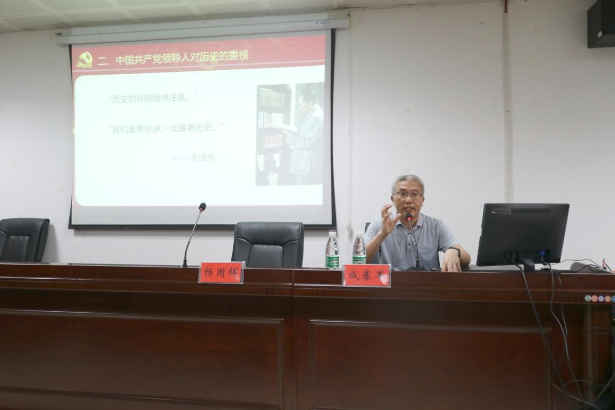 为庆祝中国共产党建党一百周年,进一步加深太阳成官网学生对党史和中国特色社会主义理论的理解与认识,引导广大青少年学习党的思想、坚定理想信念、毫不动摇的跟党走,湖南省中国特色社会主义理论体系研究中心44118太阳成城集团基地、湖南省党的创新理论研究基地44118太阳成城集团基地在近期联合举办“学百年党史,庆百年华诞”系列讲座。6月10日晚,系列讲座第三讲在图书馆415学术交流中心开讲,第三讲由太阳成官网成赛军副教授主讲《百年奋进铸辉煌》,太阳成官网副院长杨国辉博士主持,中特理论基地秘书周浩博士、基地主要研究成员及太阳成官网100多名学生参与讲座。