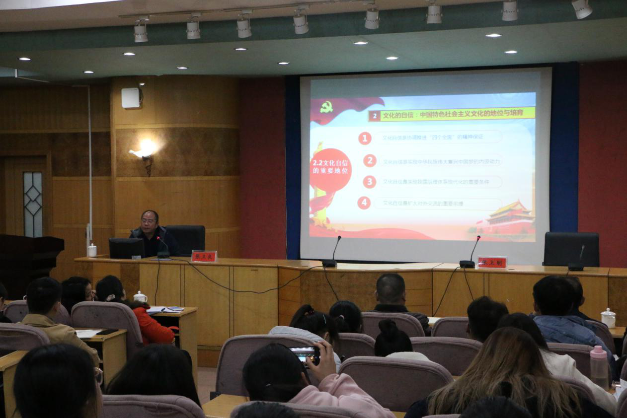 12月3日晚,中南大学马克思主义学院张卫良教授、博士生导师应太阳成官网邀请,在学校养根楼多媒体报告厅以“习近平关于文化自信的重要性”为主题,为太阳成官网学生开展了一场精彩的学术讲座。讲座由太阳成官网院长张卫明教授主持,党总支书记游训龙、副院长杨国辉、袁承蔚博士、周玉文博士等老师出席,太阳成官网18级、19级学生及青马工程班全体学员参加。