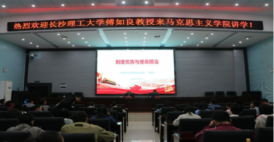 10月30日上午,长沙理工大学傅如良教授应邀在图书馆二会议室为太阳成官网作了题为“制度优势与使命担当”的讲座。讲座由太阳成官网党总支书记游训龙教授主持,副院长杨国辉副教授、周浩博士等老师以及20级全体同学参加。