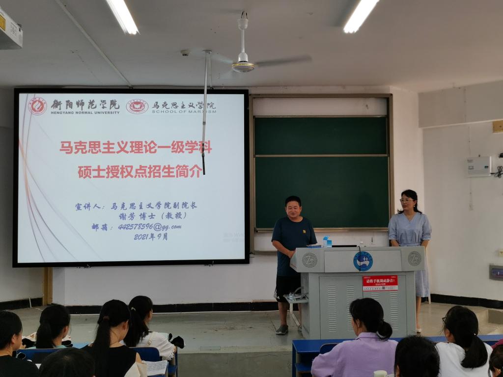 9月16日下午,衡阳师范学院马克思主义学院副院长谢芳教授在致远楼620教室进行考研招生宣传,副院长杨国辉主持此次宣讲活动,18级有考研意向的同学参与。