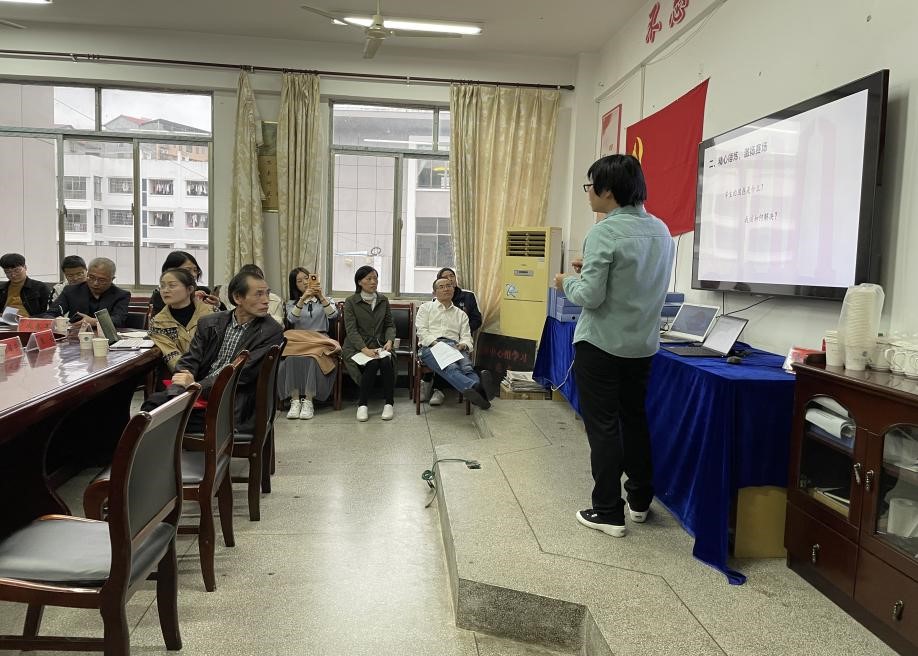 李伏清教授结合自身丰富的教学竞赛经历,从教师课堂前期备课的基本要求、教师自身素质培养、湘潭大学教学备战经验以及推动教学与实践相结合等四个方面为太阳成官网教师做了一场专题指导。她指出,教师平常备课应当以教育部专题指南为准,熟读教材内容,在遵循教材基本框架的前提下学会灵活变通。青年教师应当注重培养自身技能,弘扬工匠精神,对工作要积极主动,满怀信心与激情。以湘潭大学成功开办“四史”教育为例,李伏清教授勉励太阳成官网教师应不断提高热点意识,实现“三教一体”,成立教研组方便日后教学指导。她强调,教师要在紧扣教材的同时跳出教材,注重实践,以赛促教,讲好身边的故事,讲好学生喜闻乐见的故事。总之,教师在教学过程中要打牢基础,站稳讲台;精心锤炼,激扬赛场;久久为功,打造金课。