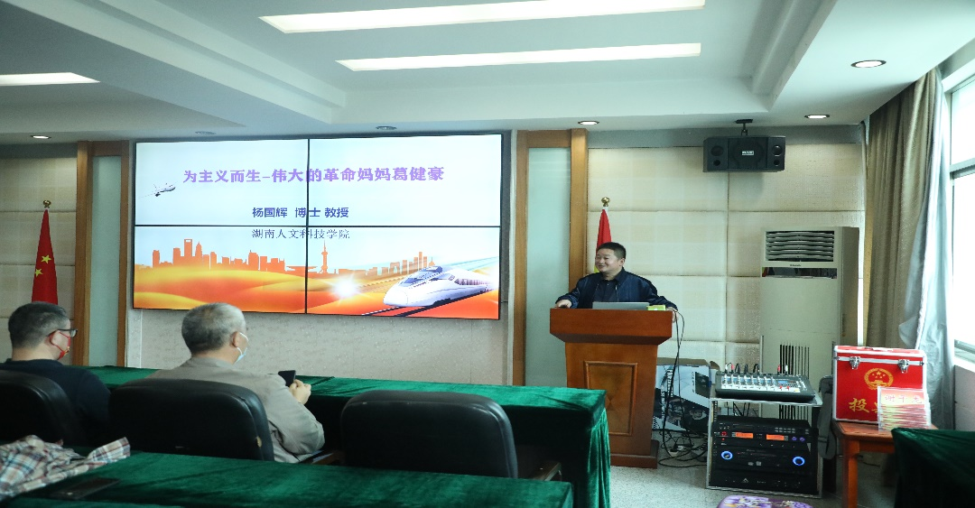 讲座中,杨国辉从敢为人先、立志为民和不畏牺牲、勇于担当两个部分带领大家深入了解葛健豪。首先,杨国辉向大家介绍了葛健豪革命一家人的基本情况,并从葛健豪与丈夫蔡蓉峰发生的四次分歧中赞美她敢于冲破礼教束缚的精神。自古潇湘多奇女,杨国辉生动地讲述了葛健豪用自己的魄力和果敢实现了属于她的“奇”。接着,杨国辉通过一些鲜活的事例带着现场听众走近葛健豪。他强调正是葛健豪鼓励并支持子女投身于革命事业,才会养育出蔡和森、蔡畅这样的一代优秀革命家,也正是葛健豪重视女学教育,并三次办学,从而极大地促进了妇女思想的解放,壮大女性革命者的力量。最后,杨国辉指出葛健豪是革命时期中共领导人的坚实后盾,她一直走在革命的路上,努力改变自己、去追求进步,一直在点燃自己,照亮别人,这样无私的革命精神不仅要学习,更要融入到生活实践中去。