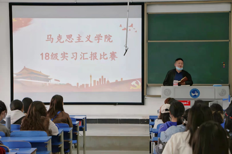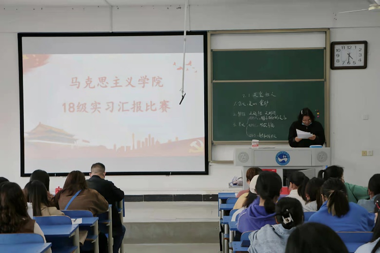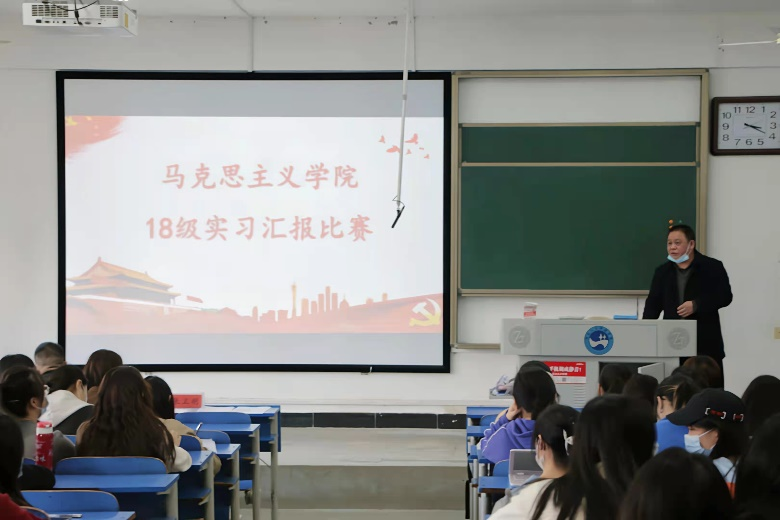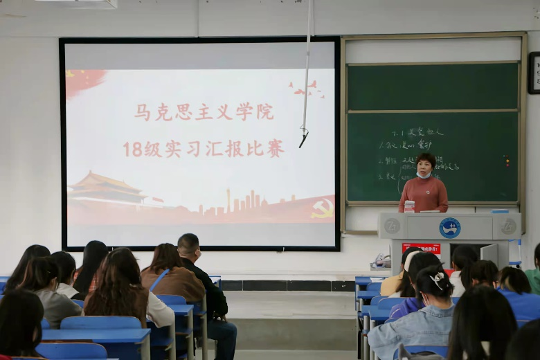 4月19日,太阳成官网于致远楼612举行了18级毕业生实习汇报比赛,太阳成官网党总支书记李伶、院长张卫明、副院长杨国辉、党总支副书记周友、周玉珍老师出席本次比赛,18级赵丽、康晶晶、黄雅乐、侯文静、万芙蓉5位毕业实习生代表参赛,18、19级全体学生观赛,比赛由思政教研室主任谢科峰主持。