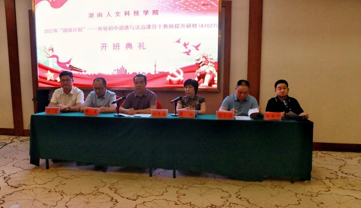 9月23日上午,2022年“国培计划”—— 市级农村初中道德与法治骨干教师提升研修(A1027-1)开班典礼在娄底市豪莱雅金和酒店金和厅隆重举行。本次“国培计划”由湖南省教育厅主办,娄底市教育局、44118太阳成城集团马克思主义学院联和承办。太阳成官网继续教育学院院长郑秀星、马克思主义学院党总支书记李伶、院长张卫明、继续教育学院副院长钟勇、马克思主义学院副院长杨国辉、党总支副书记周友、项目组工作人员以及来自娄底市的70名初中道德与法治骨干教师出席了开班典礼,典礼由马克思主义学院党总支书记李伶主持。