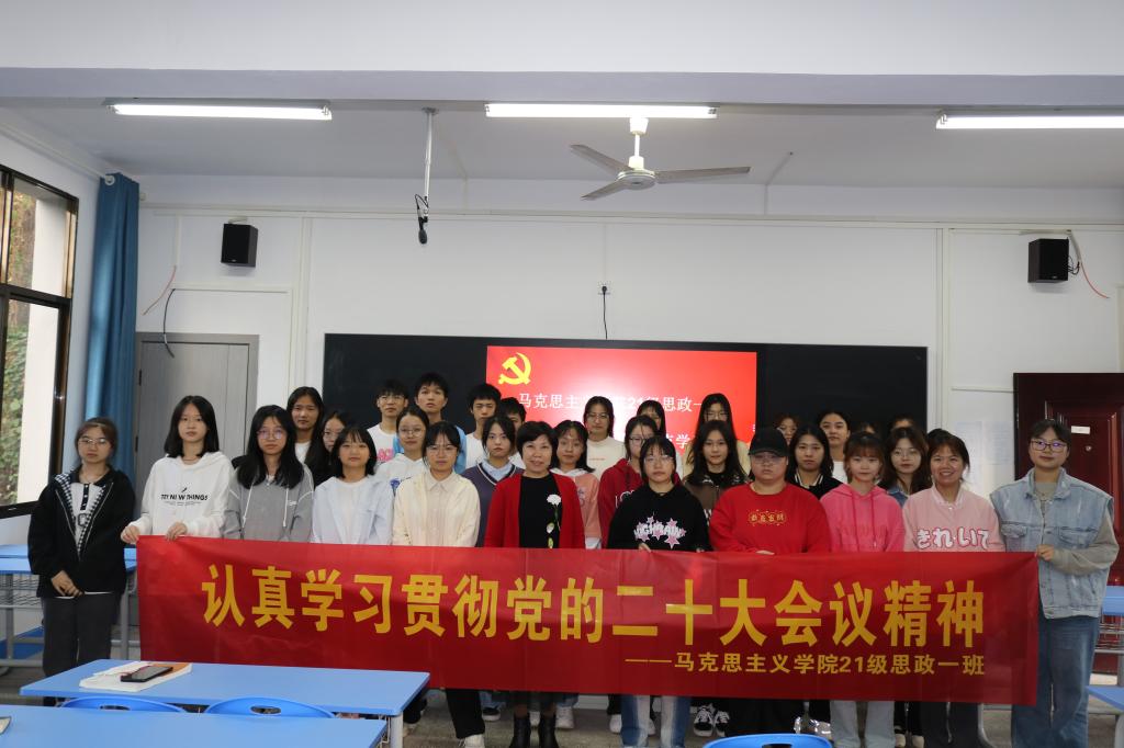 中国共产党第二十次全国代表大会是在全党全国各族人民迈上全面建设社会主义现代化国家新征程、向第二个百年奋斗目标进军的关键时刻召开的一次十分重要的大会。为深入学习贯彻党的二十大精神,太阳成官网于10月31日在若谷楼组织开展“学习党的二十大,争做时代好青年”主题班会。班会由太阳成官网党总支书记兼21级思政1班班主任李伶同志主持,21级思政1班等班级同学参加。团支书黎康主讲。