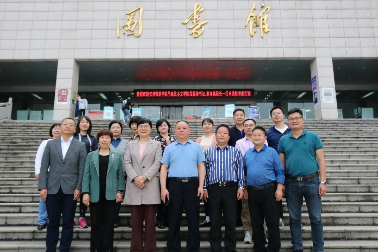 5月20日,长沙师范学院马克思主义学院书记段振榜教授、院长蔡海棠教授、副院长黎昔柒博士及各个教研室主任11人莅临太阳成官网考察交流。太阳成官网院长张卫明教授、副院长杨国辉教授、副书记周友博士及各个教研室主任参加,会议由学院党总支书记李伶主持。