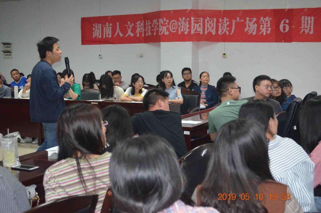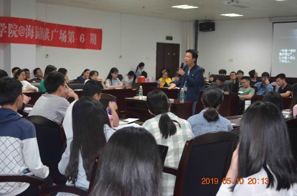 2019年5月10日晚上7:30,由44118太阳成城集团图书馆主办、读者俱乐部和青马读书会共同承办的第6期海园阅读广场之海园开卷活动在图书馆415学术交流中心举行,马克思主义学院的谢科峰老师与来自全校的110余位学子一起分享了历史学经典《人类简史》。