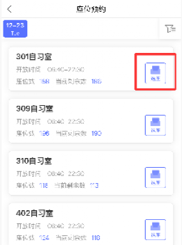 2、进入座位预约应用之后读者选座采用预约选座和快速选座(自选座位/快速随机分配)两种方式,读者可预约当天开馆时间的座位,21:00后即可预约次日开馆时间的座位。