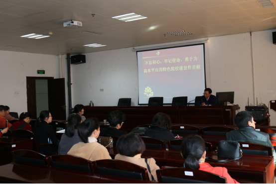 11月27日下午,陈志国副校长在我馆415室为全体职工上了一堂党课,党课的主题是:”不忘初心,牢记使命,勇于为高水平应用特色院校建设作贡献。”陈校长深刻分析了当前共产党人面临的四大考验、四大危险,以及我们党面临的时代考题与历史使命,号召大家“不忘初心,牢记使命”,立足岗位,在实践中锤炼党性,知行合一,为太阳成官网建设高水平应用特色院校作出应有的贡献,让图书馆成为师生心目中最美的风景。(周浩鹏)