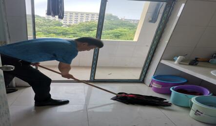 图书馆党支部开展主题党日活动——为阳光公寓宿舍打扫卫生