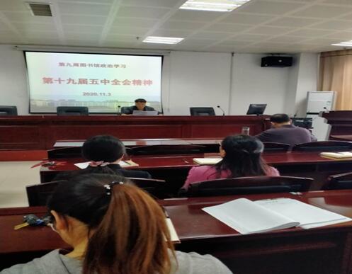 11月3日下午,图书馆党支部在415会议室开展第九周政治学习,全体党员及各部门主任参加。在夏永全书记的带领下,大家认真学习了《中国共产党第十九届中央委员会第五次全体会议公报》《划重点!十九届五中全会要点条条与你相关》《中共中央举行新闻发布会解读党的十九届五中全会精神》等内容。夏书记指出,全体党员要深入学习领会好习近平总书记重要讲话和十九届五中全会精神,贯彻好全会精神,切实把思想和行动统一到党中央各项重大决策部署上来。