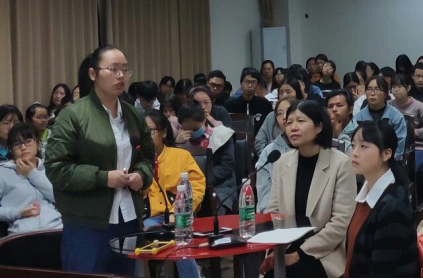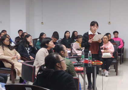 刘泽宇同学第一个发言,她从安分守己、自尊自信、爱憎分明、愚昧残忍四个方面重点分析了“鹿三”这个人物形象。欧玉珠同学从“学”与“习”二字的辩证关系入手,诠释了她的读书心得“学以富思想,习以出真知”。彭玲副教授则强调《白鹿原》这本“垫棺作枕”的小说,其文化价值大于人物描写;并从地方志与民族史两个方面,乡土人情、家族纠葛两个层面对白鹿原上的社会治理模式、社会交往模式、社会评价模式进行了深入分析,从正史与秘史两个角度对小说进行了全面解读,生动地呈现了学者眼中的“经典”模样。彭玲老师还从评审视角对读者进行了写作指导。她鼓励大家读书心得要写出自己的观点,即使不成熟,也应该尝试;对于经典,可写的方面很多,但不需要面面俱到,以避免犯“蜻蜓点水”的毛病;写作时最好能先选好一个角度,这样有利于对文本进行深度挖掘。