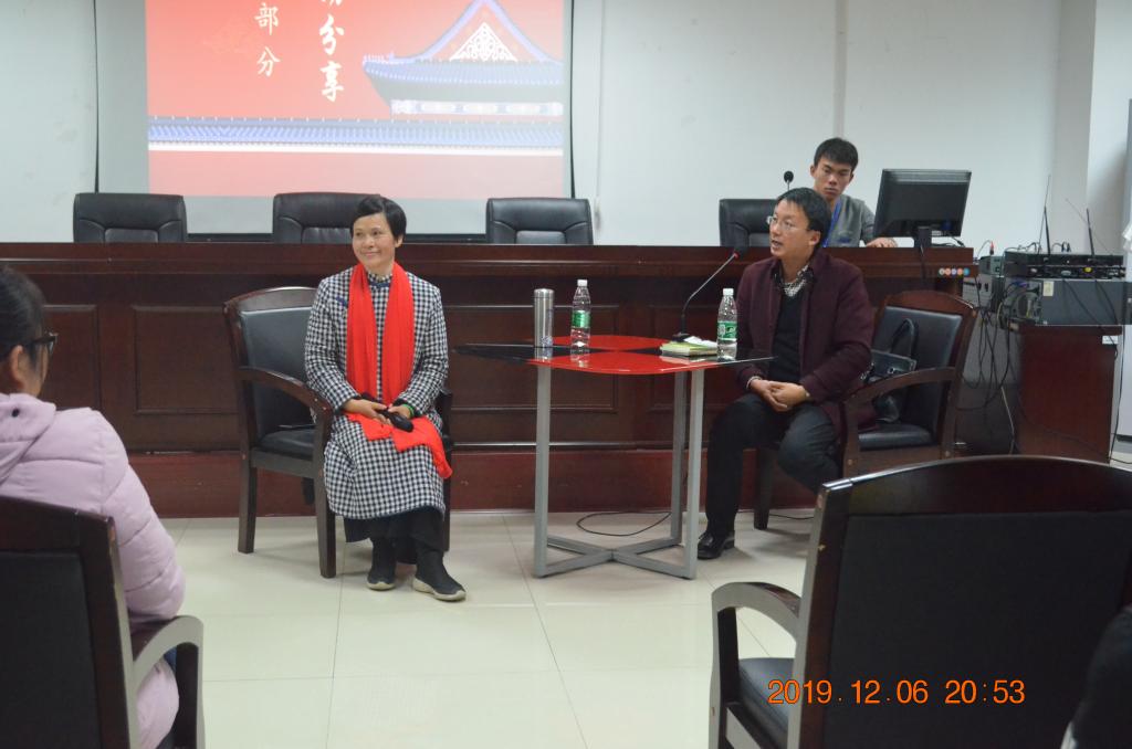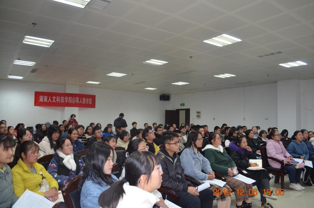 2019年12月6日晚上7:30,以“我们的国学之缘”为主题的第29期真人图书馆活动在图书馆415学术交流中心隆重举行,娄底市人大教科文卫委副主任委员曾敏老师和太阳成官网音乐舞蹈学院副教授鄢含笑老师作为本期活动的真人图书,与来自全校的130余位学子一起分享了他们学习国学的故事。