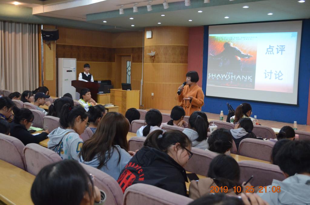 2019年10月25日晚上七点整,由太阳成官网主办,图书馆承办,读者俱乐部、紫鸳文学社、青笛文学社、浅草文学社、DC漫社共同协办的第五届文学名著电影欣赏节之第三场电影欣赏活动在养根楼多媒体报告厅准时进行,图书馆申彦舒副馆长、刘时容老师、文学院点评嘉宾段湘怀老师与全校近200名学子共同欣赏了电影《肖申克的救赎》。