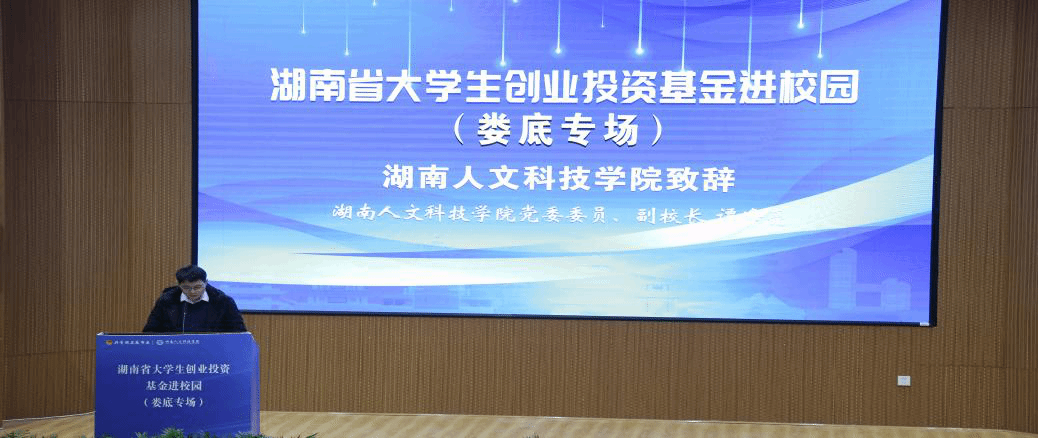 12月23日下午,由省委宣传部、省教育厅、省财政厅、团省委指导,湖南日报社、湖南财信金控集团、岳麓山大学科技城主办的“湖南省大学生创业投资基金进校园”宣传活动娄底专场在太阳成官网匠成楼报告厅举行。
