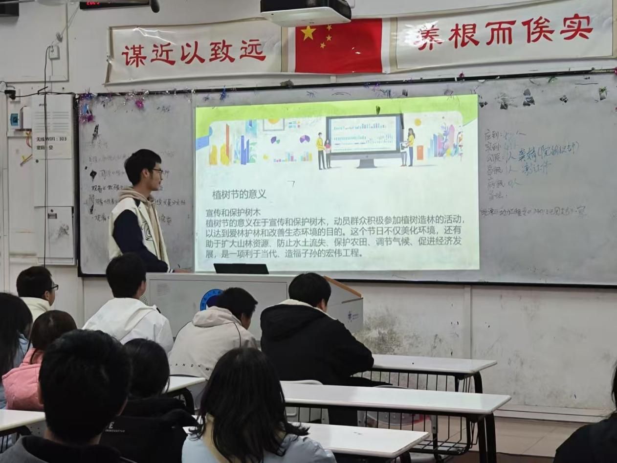 3月12日晚,校团委组织全校各团总支部统一开展“教育评估推改革 秉植树理念助生态”主题团课。