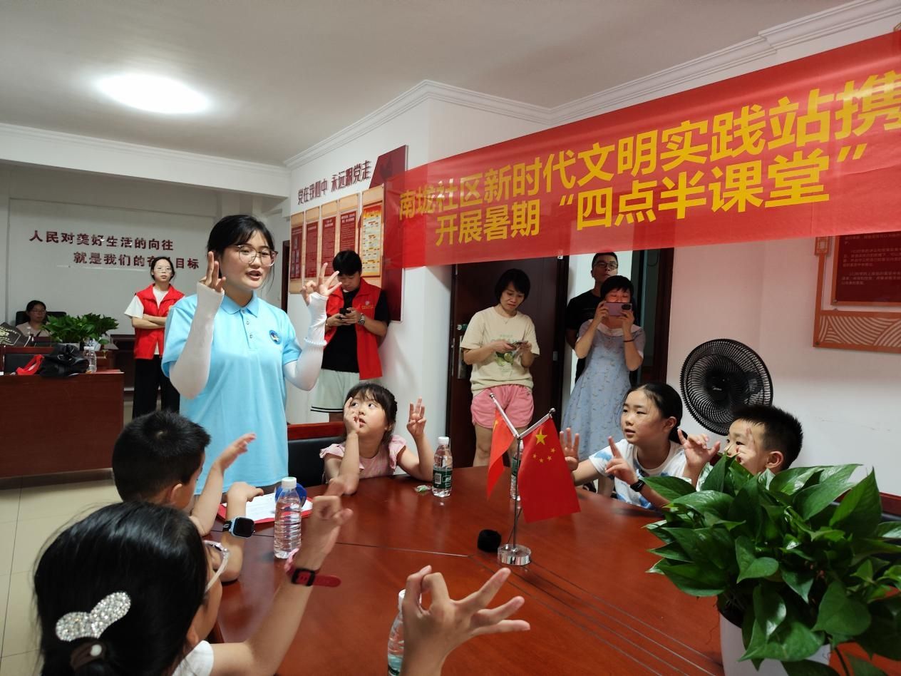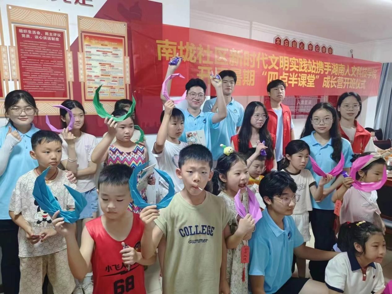 近日,肖毅、李璐玢、李英英三位老师带领44118太阳成城集团“彩虹计划“智慧潇湘服务队赴大科街道辖区内社区开展了为期一周的“四点半课堂”活动。开设创意手工、趣味数学、兴趣英语、科普知识等课程,志愿者们在教与学中以知促行、以行践知。