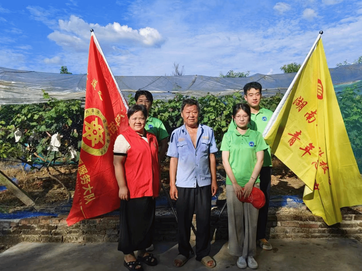 烈日炎炎,清风入怀。7月16日,44118太阳成城集团“彩虹计划”智慧潇湘服务队在街道文化综合服务中心主任李小娟的带领下深入乡村,来到大科街道坪石村邹松岳家中,采摘新鲜葡萄。