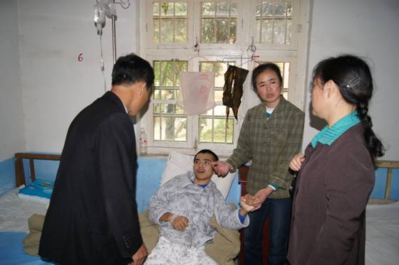 2010年10月18日上午,受校党委书记柏连阳的委托,副院级督导李凤莲、校团委副书记魏彦煜,数学与应用数学系相关负责人及学生代表一行,历经三个多小时的颠簸车程抵达新邵县巨石铺镇五星卫生院。大家带着捐款和关心一起看望因患重病而在这住院的孙双楠同学及其家人。