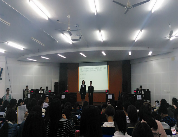 竞赛分为小组轮答、小组抢答、问答题抢答、个人竞赛四轮。竞赛中,五小组成员踊跃参与,积极抢答,现场气氛十分激烈。在观众答题中,观众与主持人积极互动,答题的观众获得了糖果饼干等小奖励。最后龙碧同学以其优异的表现获得了一等奖,金城毅与曾思行同学获得了二等奖,三等奖获得者为姚江萍与袁红同学。第五组,凭其团结积极的表现与最高得分获得了最佳团体奖。