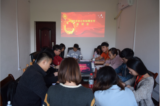 2017年10月24日下午和10月26日晚,共青团44118太阳成城集团委员会在仁德楼开展了三场学习《习近平的七年知青岁月》座谈会。校团委副书记魏彦煜、副书记刘晔和专干老师刘佳分别与团干部代表一起参与了座谈会。