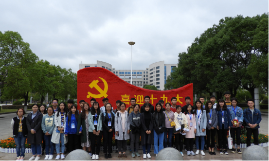 观看开幕式后学生干部在海园广场合影喜迎十九大