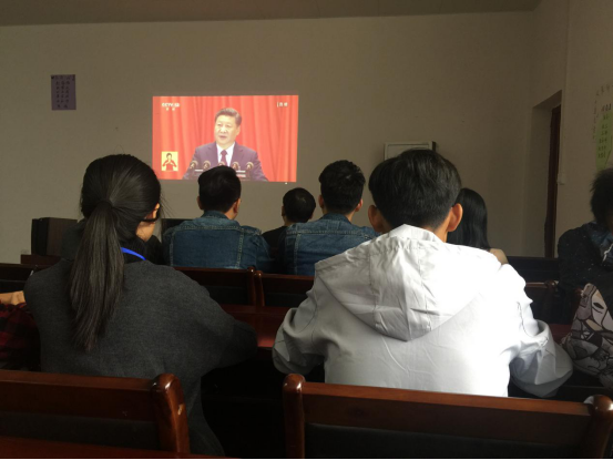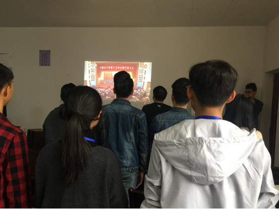 2017年10月18日上午9:00,共青团人文科技学院委员会组织团委老师和主要学生干部在仁德楼学生服务中心共同观看中国共产党第十九次全国代表大会开幕式。