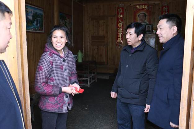在长石村村干部的带领下,慰问组对村里特困户进行了走访慰问。每到一户,慰问组都与村民详细交谈,询问他们的生活、身体状况及经济收入来源等,并为特困户发放了慰问金,提前为贫困群众带去了节日的关心与问候,将温暖送到他们的手中、心中。