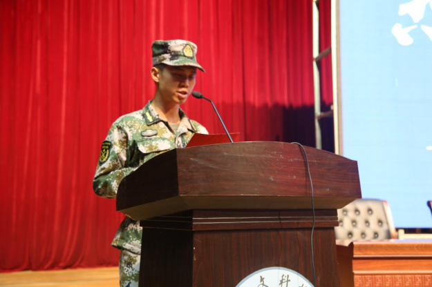 退役复学学生代表何勇发言,他向大家讲述了自己参军的光荣历史,参军的经历不仅帮助他学到了知识,还锻炼了意志,磨砺了性格,使生活更充实,思想更成熟,信念更坚定。他表示,报效国家,此生无悔。
