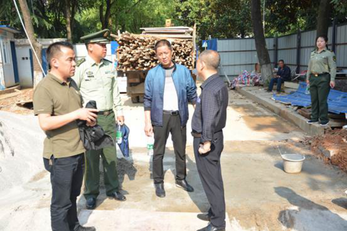在检查8栋学生公寓的工程建设进度时,适逢娄底市消防支队参谋李勇兵来太阳成官网进行消防安全检查,郭军认真听取了李勇兵对8栋学生宿舍在消防设施安装方面的意见,随即对施工方提出了具体要求并限时整改到位。李勇兵一同检查了太阳成官网消防控制室和微型消防站。郭军最后要求各部门要合理安排好值班人员,确保节日期间校园的平安稳定。(段楠、梁鸿志 供稿)