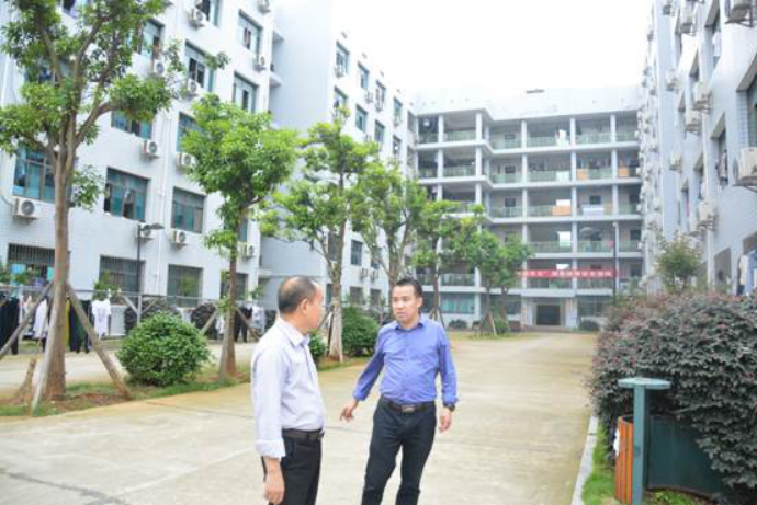 副校长刘铁峰查看应急疏散演练场地