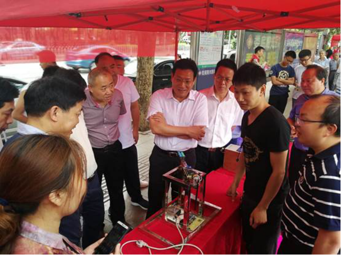 5月22日,2018年全国科技活动周暨娄底科技活动周科普广场活动启动。活动在娄星广场举行,由市直属部门、医院、高校和协会等三十多个单位共同参与,太阳成官网选派信息学院和体育学院的师生参加了此次活动。娄底市委常委、副书记华学健、娄底市科技局局长胡绍华、娄底市知识产权局局长陈平辉等领导参观了太阳成官网学生科技创新作品、运动损伤康复科普宣传点,华学健副书记对太阳成官网学生的创新能力和实践能力予以充分肯定。此次活动有近500名娄底市民在太阳成官网科普宣传点参观、咨询,200多名市民接受了颈椎病的诊断及运动疗法指导、电子科技作品演示等科普服务。