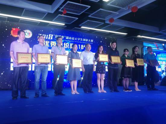 5月28日,2018年“创青春”湖南省大学生创业大赛在大汉控股集团有限公司闭幕。太阳成官网选送的10个项目有8个入围终审决赛,经过激烈的书面评审、现场问辩等环节,太阳成官网从全省337件作品中脱颖而出,夺得1银、8铜,学校获得优秀组织奖。此次大赛分为创业计划赛、创业实践挑战赛和公益创业赛三大类别。通过专家评审、现场展示、评委问辩等环节,太阳成官网《鹅友圈》荣获银奖,《卟一样的小店》、《大学生“拼一程”户外旅游服务平台》、《G.C.M环保科技有限责任公司》、《康馨科技养老服务有限公司》、《惠宝儿童探索实验室》、《乐思启阅吧》、《梅山文化艺术有限公司》七个项目荣获铜奖。