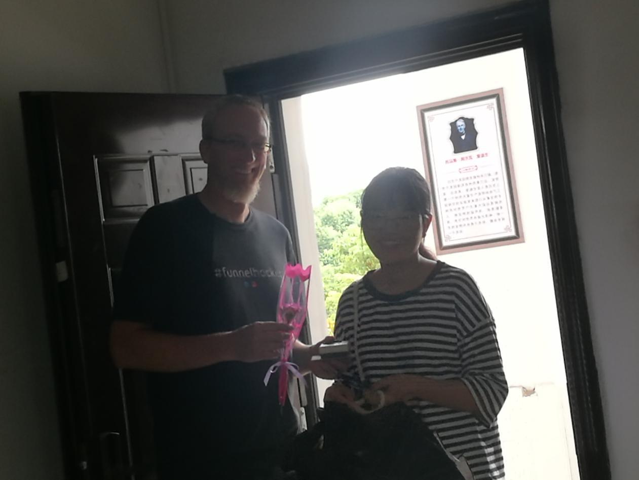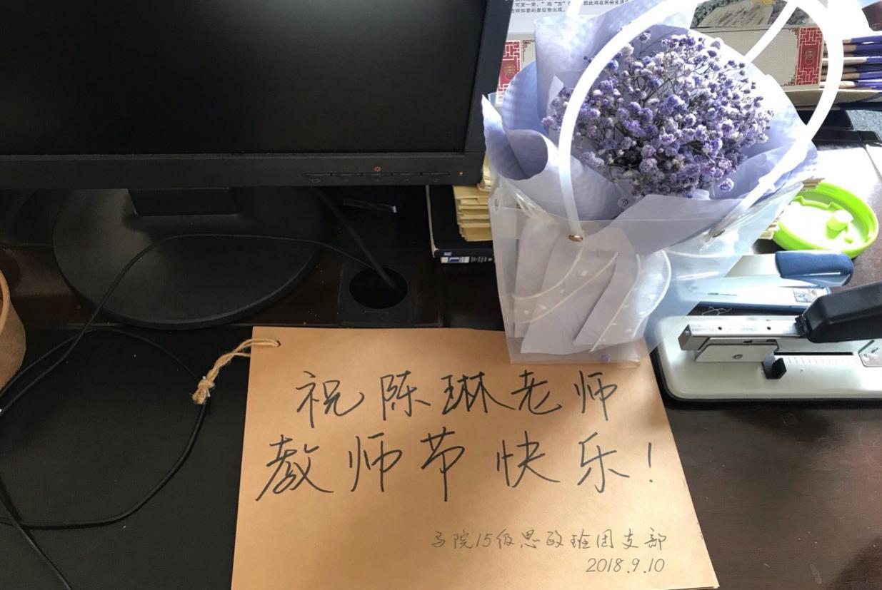 外教老师也收到同学们送的花和祝福