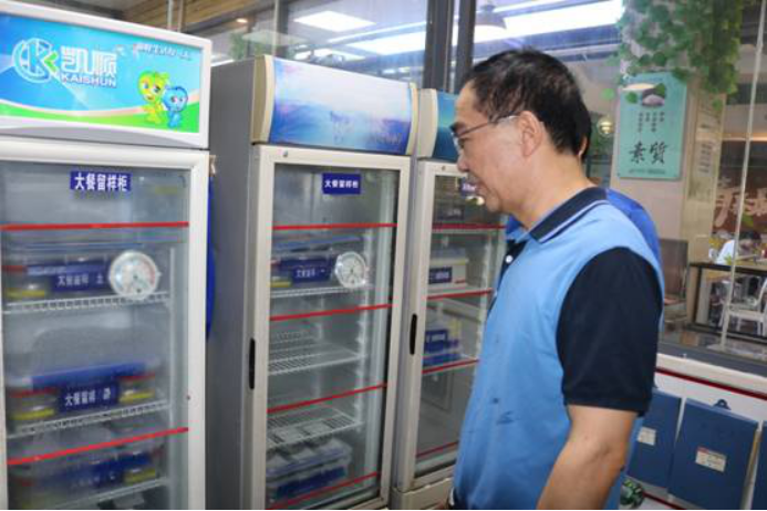 蒋建初一行先后来到淳和楼行远餐厅、绿膳餐厅、光晔餐厅的就餐大厅、洗碗间、食堂仓库,原材料清洗间、切配间、烹调加工间、售卖间,分别对各餐厅进行了现场检查。