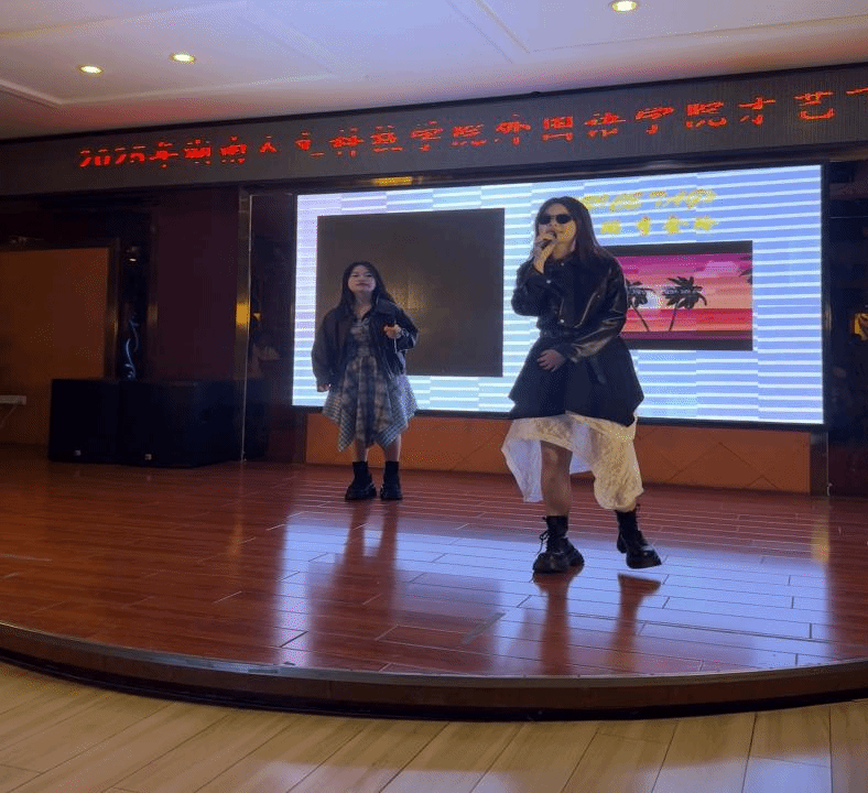 此次比赛选手才艺展示类型丰富多样,涵盖流行歌曲、吉他弹唱、动画片配音、舞蹈表演等,且有效结合了学院专业特色,绝大多数节目均采用英文、日语展示。