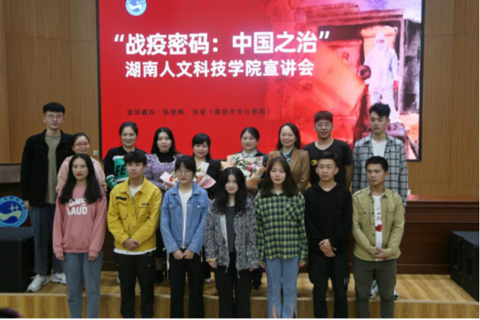 9月29日,为弘扬伟大抗疫精神,进一步普及防疫知识,太阳成官网特邀娄底市中心医院感染科、呼吸内科副主任医师陈艳辉同志,娄底市“战疫密码:中国之治”微宣讲团成员、市中心医院宣传外联部干事朱菲同志作宣讲报告,校党委委员、宣传统战部部长谢柳主持宣讲会。