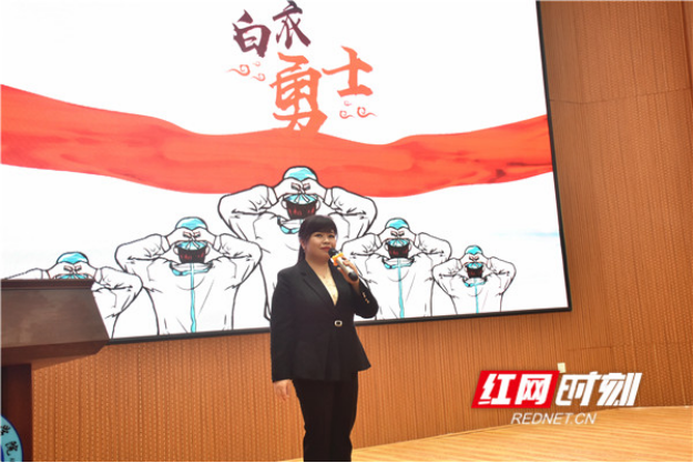朱菲饱含深情地作了题为《白衣勇士》的演讲。她用朴实的语言讲述了娄底“白衣勇士”奋勇抗击新冠疫情的感人故事,讴歌了党员们“我是党员我先上,我是党员我先来”的大无畏精神,深刻阐述了战疫过程中展现的中国速度和中国力量。视频中争分夺秒的救治场景以及“救治危重患者,每一秒都在与死神赛跑”等感人肺腑的话语令在场师生泪目。