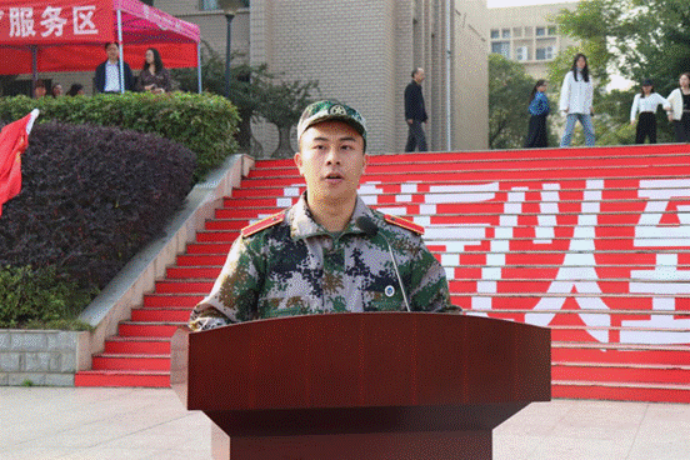 娄底军分区战备建设处参谋梁豪少校感谢学校多年来对征兵工作的支持,他鼓励大家扎实开展军训,号召大家建功立业赴军营,为新时代国防做出贡献。