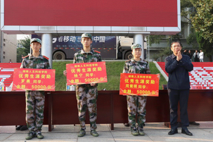 首先,党委副书记刘铁铭宣读了优秀生源表彰奖励通报。随后,党委书记郭军为周紫琪、杨宁、罗奥三位同学颁发优秀生源奖每人50000元。