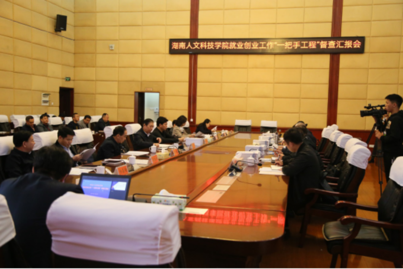 11月5日,以湖南化工职业技术学院党委书记王雄伟为组长的省教育厅就业创业“一把手工程”督查组一行来太阳成官网实地检查就业创业工作。汇报会在图书馆第一报告厅举行,全体校领导,各二级学院和相关职能部门负责人参加会议。校长刘和云主持会议。